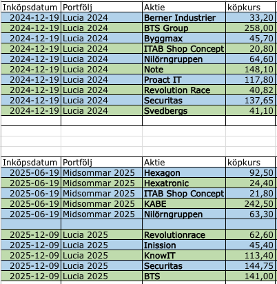 Med jämna mellanrum tar Kvalitet För Pengarna ut portföljer med en tänkt placeringshorisont på 18 år. Här publiceras dessa portföljer och det görs uppföljningar på dem någon gång per år.